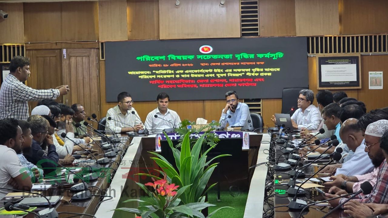 পরিবেশের ভারসাম্য রক্ষা এবং ক্রমবর্ধমান দূষণ নিয়ন্ত্রণে অধিদপ্তর এখন আরও বেশি তৎপর। এরই ধারাবাহিকতায় 'মনিটরিং এন্ড এনফোর্সমেন্ট উইং এর সক্ষমতা বৃদ্ধির মাধ্যমে পরিবেশ সংরক্ষণ ও মান উন্নয়ন এবং দূষণ নিয়ন্ত্রণ' শীর্ষক প্রকল্পের অধীনে নারায়ণগঞ্জে এক বিশেষ সচেতনতামূলক কর্মশালা অনুষ্ঠিত হয়েছে। মঙ্গলবার (২৮ এপ্রিল) সকালে জেলা প্রশাসনের সম্মেলন কক্ষে এই মতবিনিময় সভার আয়োজন করা হয়। অনুষ্ঠানের মূল লক্ষ্য ছিল কীভাবে আধুনিক প্রযুক্তির সমন্বয়ে পরিবেশ আইন বাস্তবায়ন করা যায় এবং কেন বর্তমান সময়ে দূষণ রোধ অপরিহার্য।